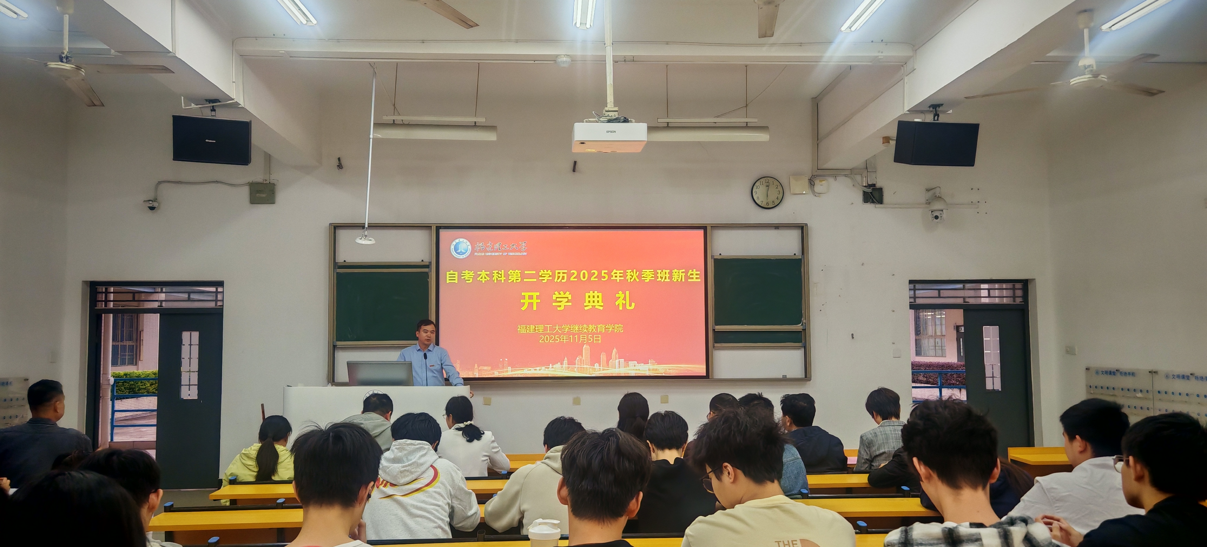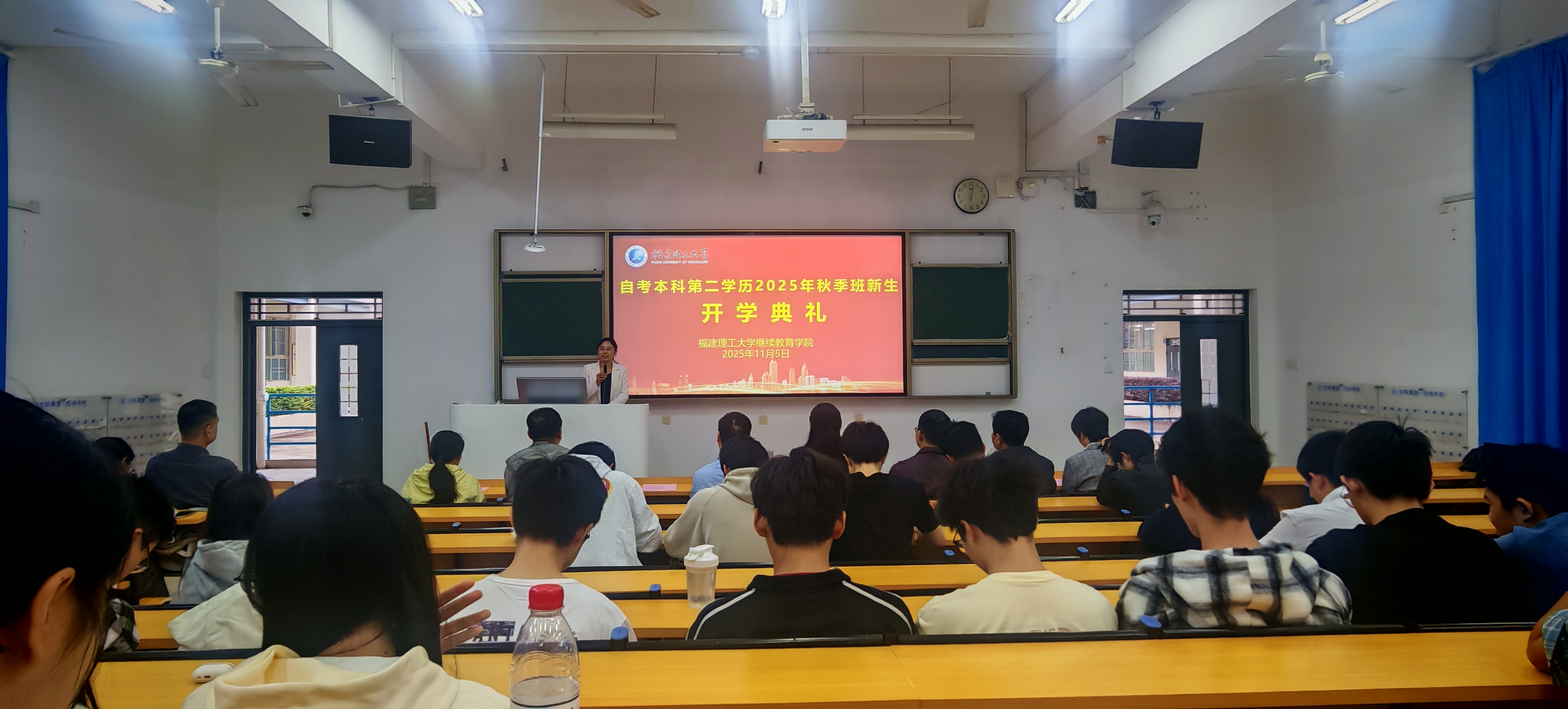 11月5日下午,我校在旗山校区北区大教西—3举行2025年高等学历继续教育自考本科第二学历秋季班新生开学典礼。教务处副处长马刚峰、继续教育学院副院长柯益群、电子电气与物理学院副院长蔡志明、法学院副院长张弘、计算机科学与数学学院副院长唐郑熠以及相关老师出席,自考本科第二学历法学专业、计算机科学与技术专业、电气工程及其自动化专业50多名新生代表参加开学典礼。