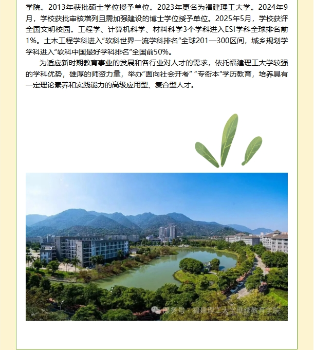 福建理工大学自考专衔本学历教育